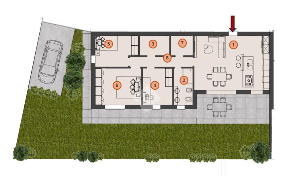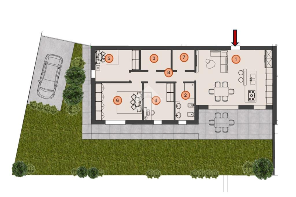 La soluzione proposta è un quadrilocale al pian terreno, caratterizzato da un’ampia zona living di 40 mq, tre camere da letto di cui la padronale di oltre 16 mq, due bagni ed un vano tecnico adibito a lavanderia.