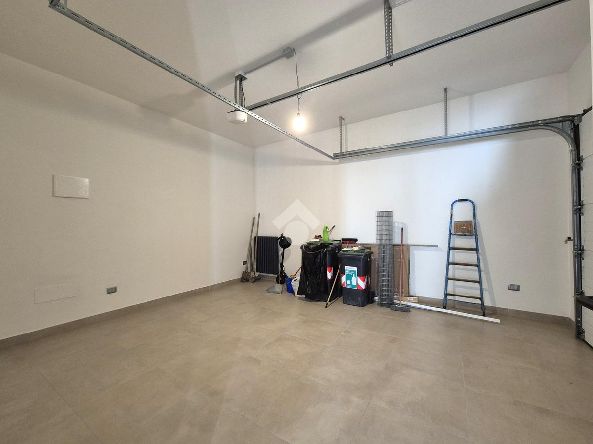 La dotazione comprende anche un ampio garage riscaldato con basculante motorizzato, dal quale si può accedere direttamente all’interno dell’immobile, cosa sicuramente pratica e funzionale.